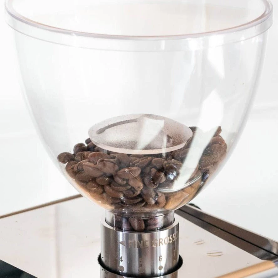 The grinder body is manufactured in aluminum and polished by hand. The cast aluminum and brass grinding chamber produce professional results and enhanced noise reduction when compared to grinders that utilize plastics in the chamber. Perfect for the home barista, the office, and hospitality.