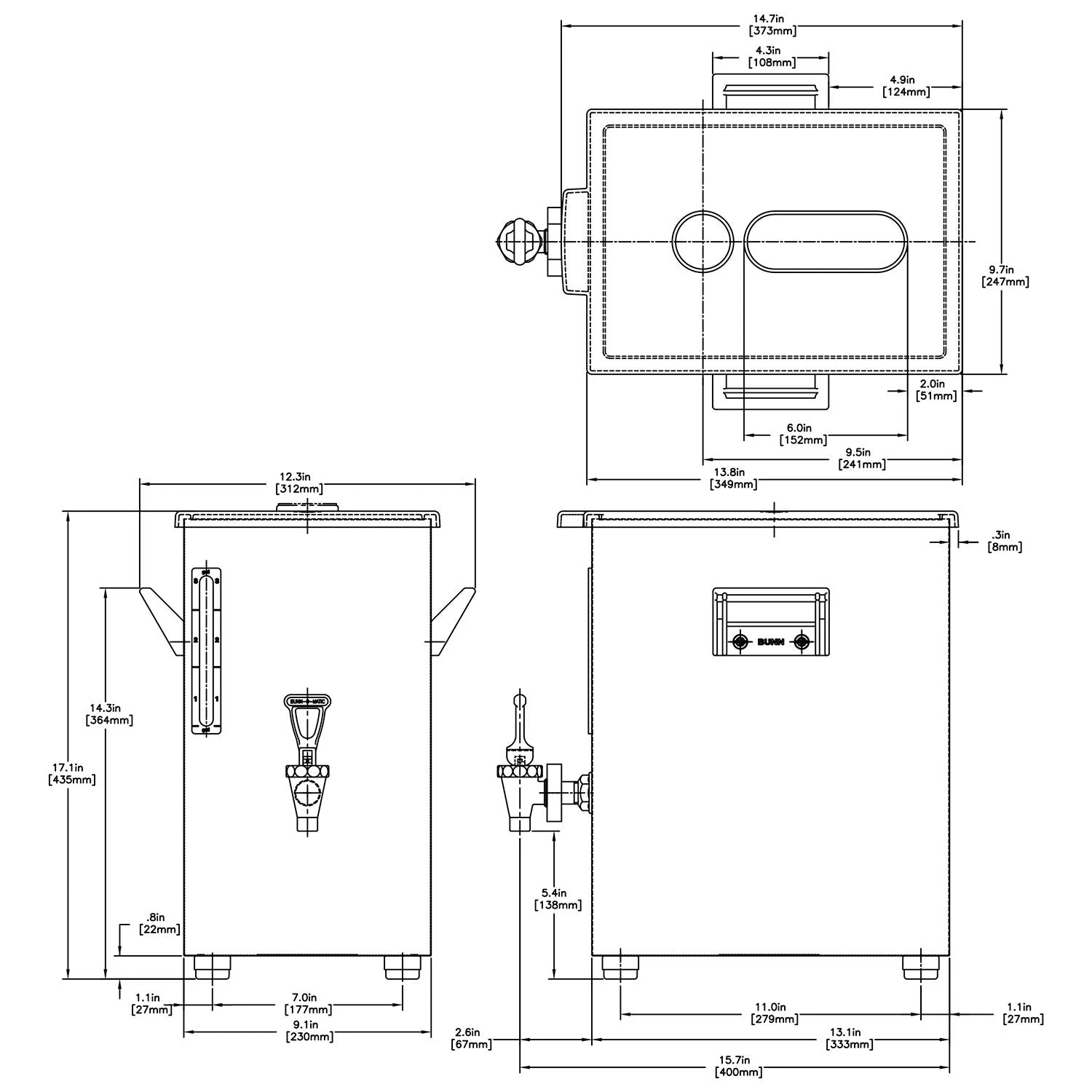 This batch tea and coffee dispenser has a slightly larger footprint that tends to have a slightly larger and enticing presentation. This dispenser is popular due to its sight gauge. Our customers love that they can keep an eye on the dispenser during busy services and better plan for brewing rather than running out of delicious tea or iced coffee and disappointing customers.