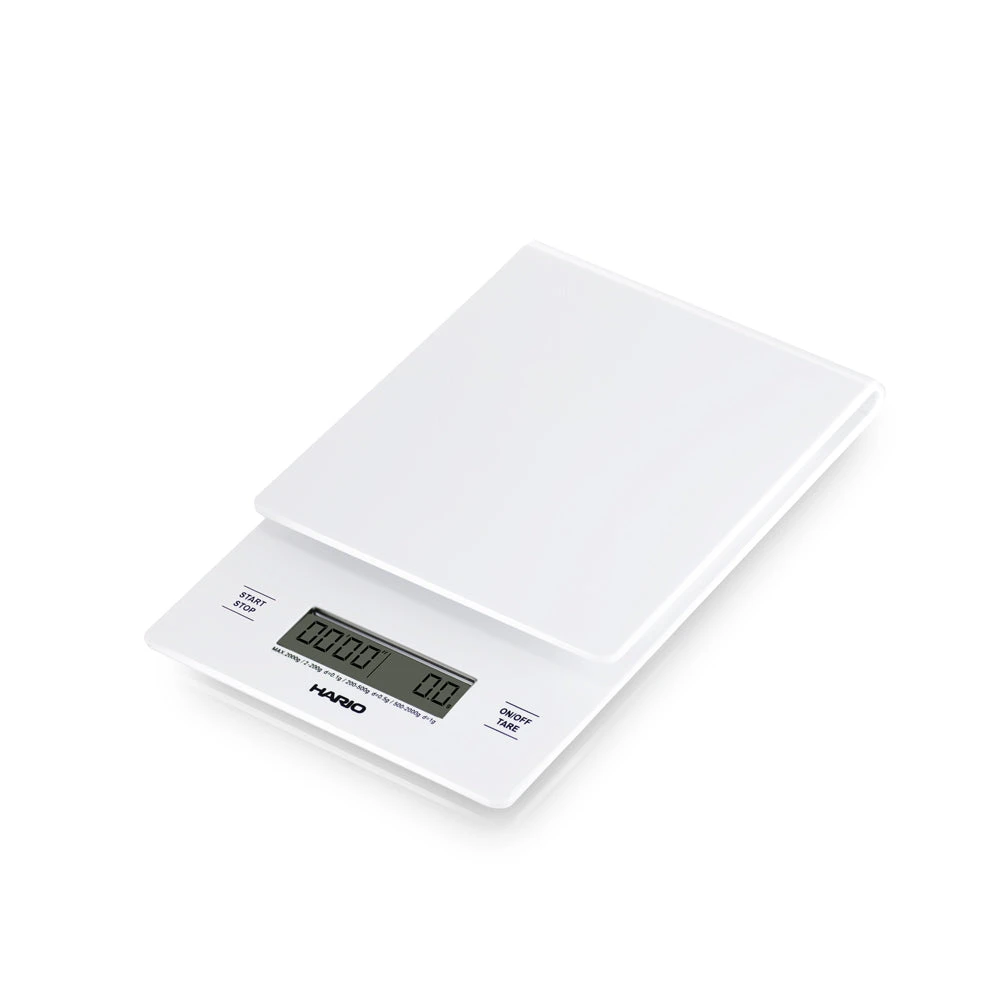 This timer and scale, when combined with the Hario Drip Station, forms the ultimate Hario symbiosis for precision pour-over brewing. It is designed to be accurate, easily readable, and has a very efficient shape. The only part that sticks out from under the drip station is the display and the buttons where you tare, read the weight and control the brew timer.