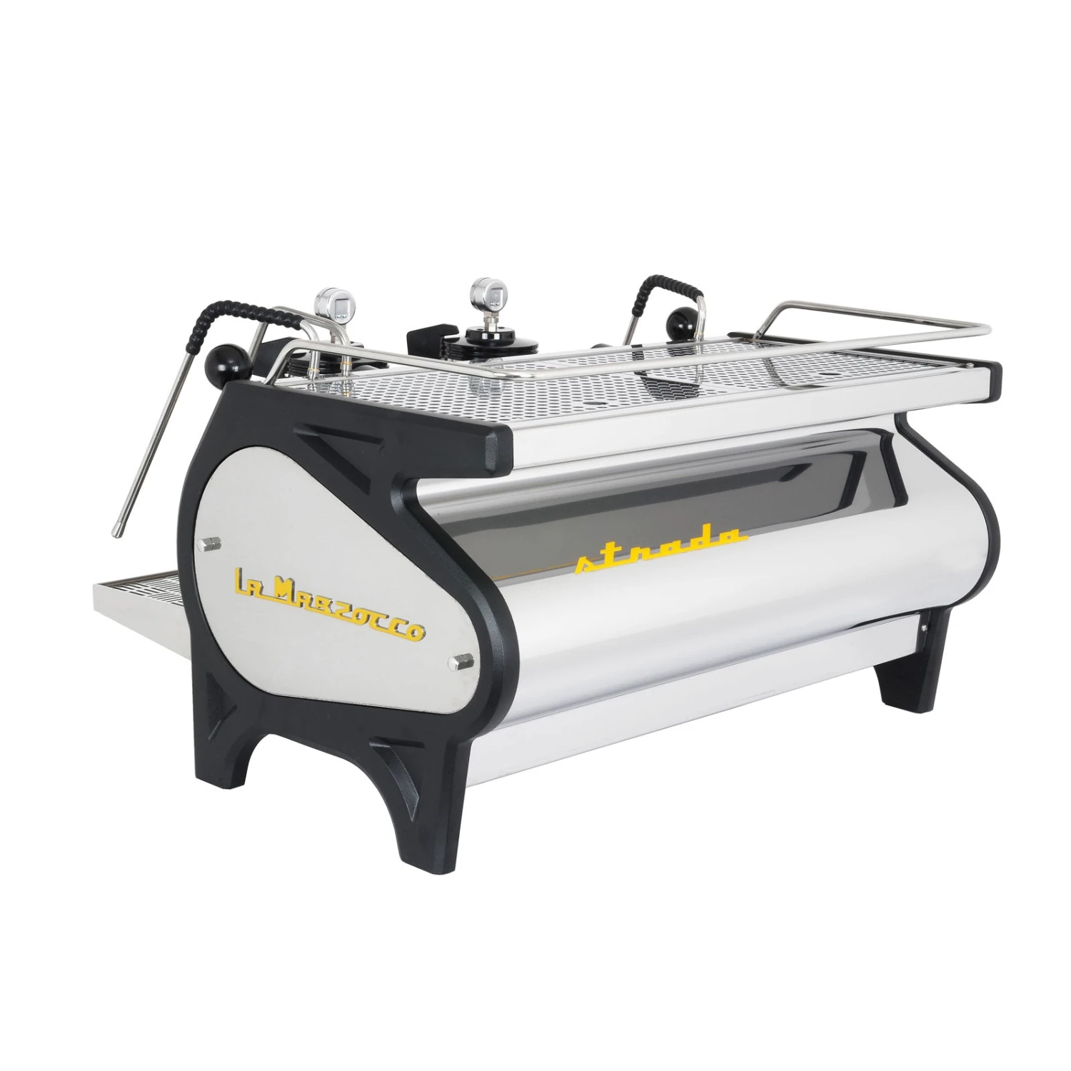 The Strada is a machine developed by baristas for baristas, featuring a sleek italian design that can be customized. Over the course of two years, La Marzocco worked with thirty of the world’s finest coffee professionals to design a machine. This group was known as the “Street Team”; the Strada, Italian for street, was named in their honor. The Strada features a lower profile that invites customer engagement in a café setting, while also providing the barista an open, expansive work area. The Strada platform has been designed to encourage creativity and customization so that each machine can be unique.