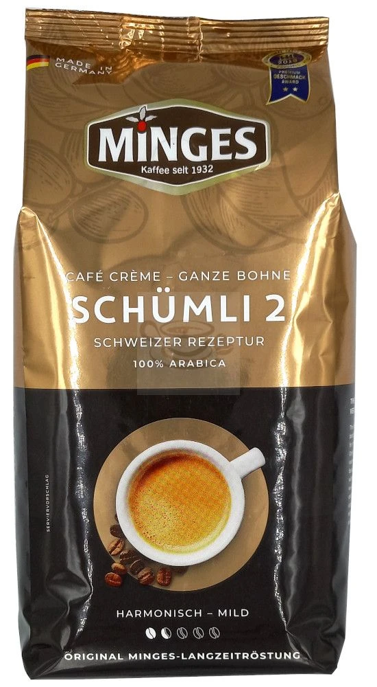Minges cafe Crema Schumli 2 is a harmonious and mild coffee. Minges cafe Crema schumli 2 is made according to the original Swiss recipe.