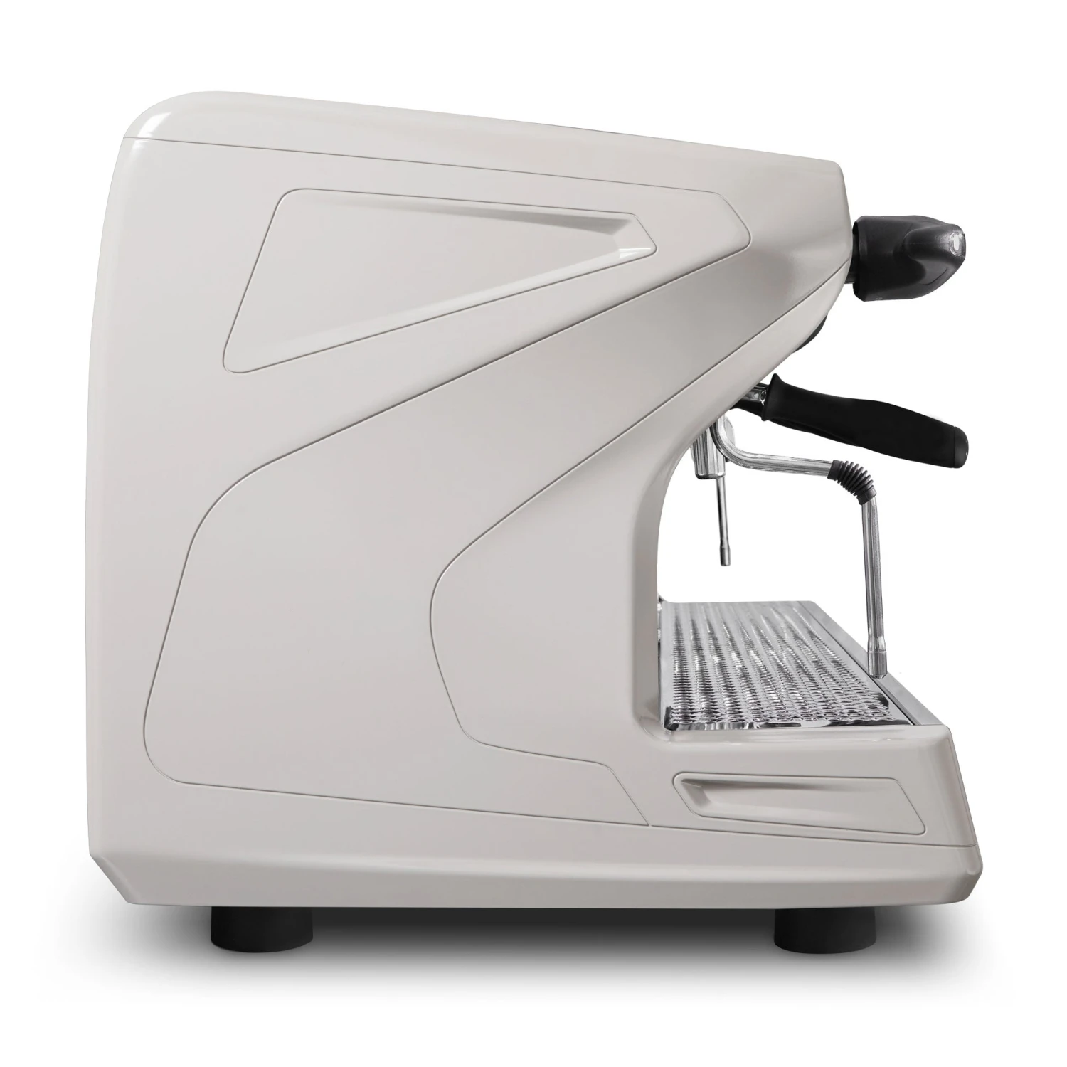 We like the Rancilio Classe 7 for several reasons. Visually it offers a more ergonomic navigation system for baristas due to its digital control panel and LED lights that light up the work area. Soft-touch keypads feel elegant and 4 programmable doses make time behind the bar a breeze. The C-Lever features 2 positions: pulse steam or steam fully for better ergonomics. The larger heating element is more thermodynamic or heat stable so your baristas are able to make more drinks per hour. The hot water dispenser has a programmable dispenser: a fantastic efficiency feature for the barista. While in standby mode the Classe 7 reduces energy consumption by 20% making this an eco-friendly espresso machine.