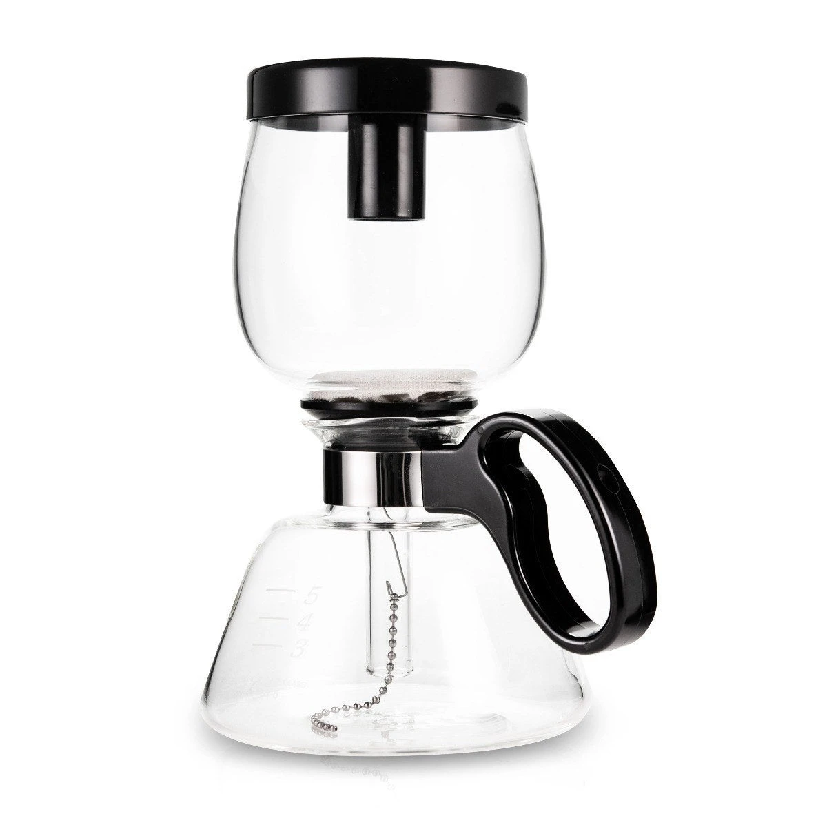 This Yama Stovetop Syphon Coffee Maker is a unique kind of brewer and hailed as one of the best stovetop siphon coffee makers. Akin to something in a scientific laboratory, this vacuum-style brewer is as much a conversation piece as it is a quality coffee brewer. Also known as a Vacpot Brewer, it uses the stove to heat the water in the brewing process and siphons the water through to make a strong yet smooth, cup of coffee. This is a popular coffee maker for us and glass is a great alternative to using something made of metal.