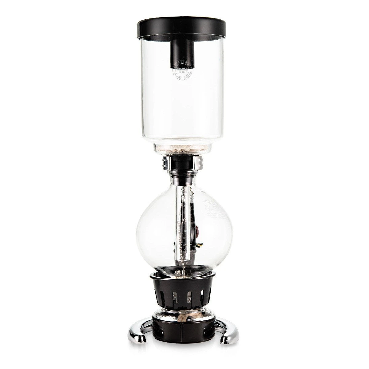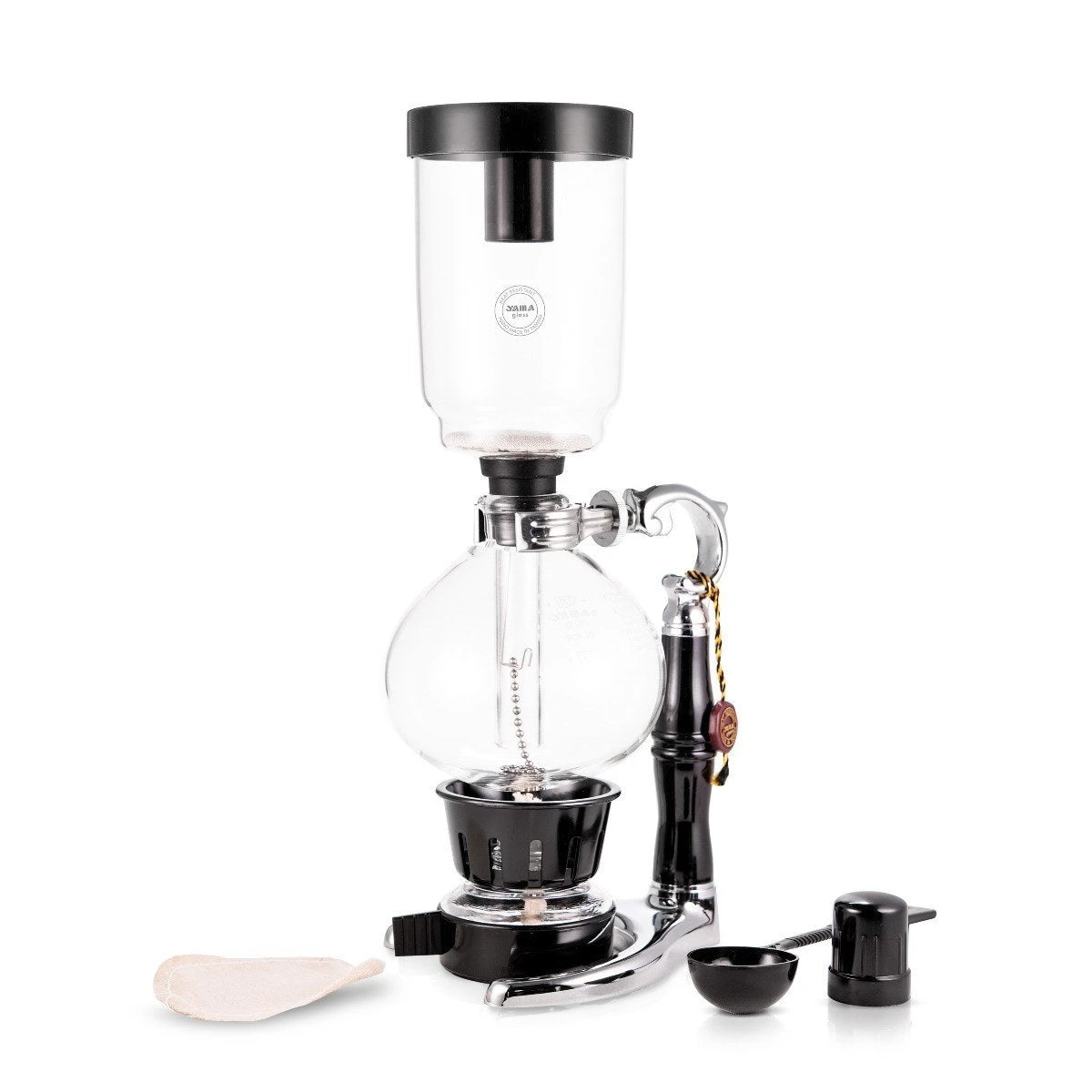 This Yama Tabletop Syphon Coffee Maker is a unique kind of brewer. Akin to something in a scientific laboratory, this vacuum-style brewer is as much a conversation piece as it is a quality coffee brewer. Also known as a Vacpot Brewer, it uses an alcohol burner/warmer to heat the water in the brewing process and siphons the water through to make a strong yet smooth, cup of coffee. It has a vintage vacuum coffee maker styling appeal and makes the perfect gift for any coffee enthusiast.