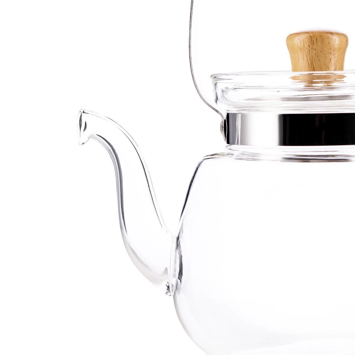 Brewing the perfect cup of tea can only be accomplished with the perfect teapot. Glass teapots are superior to other teapots because they are odorless and impart no material flavor to the tea. This high-quality, hand-blown, beautifully elegant glass kettle features a bamboo handle that swivels for ease of use. Designed to be a beautiful addition to any home or café, this kettle is perfect for brewing tea for 2-4 people.
