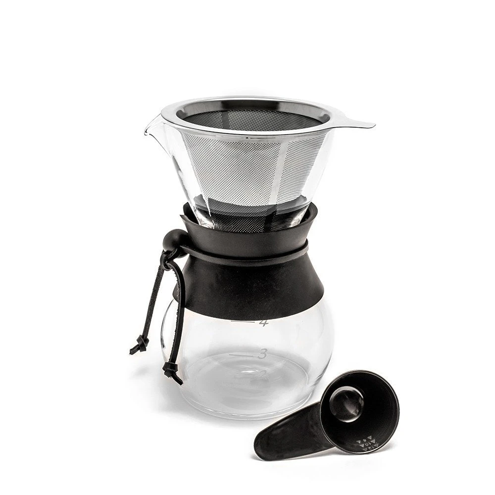 This beautiful 20oz Coffee Drip Pot from Yama Glass comes with a reusable Stainless Steel cone filter, creating an elegant display of modern aesthetic style. The Yama Coffee Drip Pot can be used out of the box with the stainless steel cone filter to brew up to 20 ounces of coffee at a time, or you can add Kalita 185 Paper Filters to produce an even cleaner taste. Each pot is made from hand-blown borosilicate glass, making it heat-resistant, and safe to put in the microwave or dishwasher.