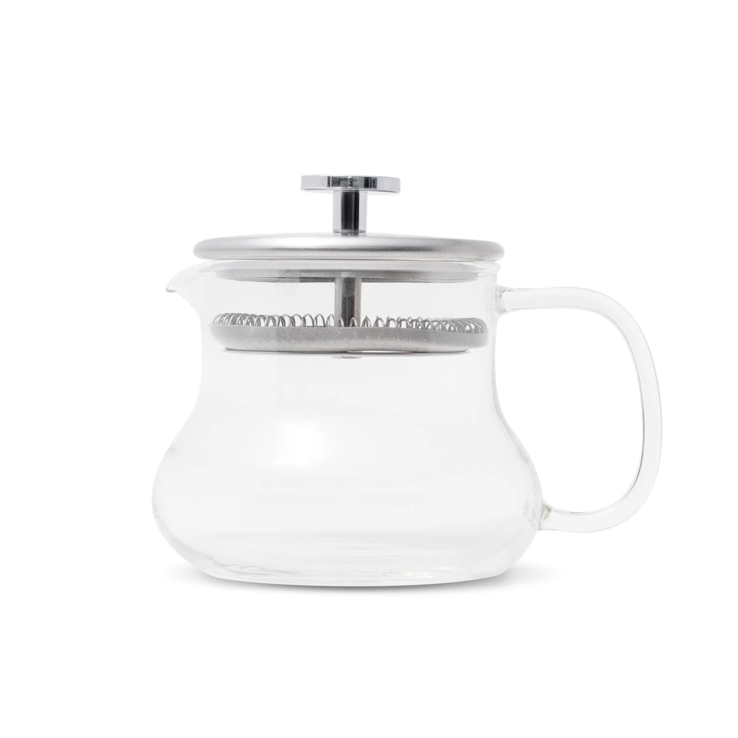 This glass teapot for 1 is a beautiful, ready-to-use teapot with a built-in mesh filter. This glass loose leaf teapot was made as much for practicality as it was for aesthetics. It is made with hand-blown borosilicate glass, making it heat resistant, and dishwasher safe and the mesh filter at the spout is perfect for larger leaf teas. Also available as a 24 oz teapot.